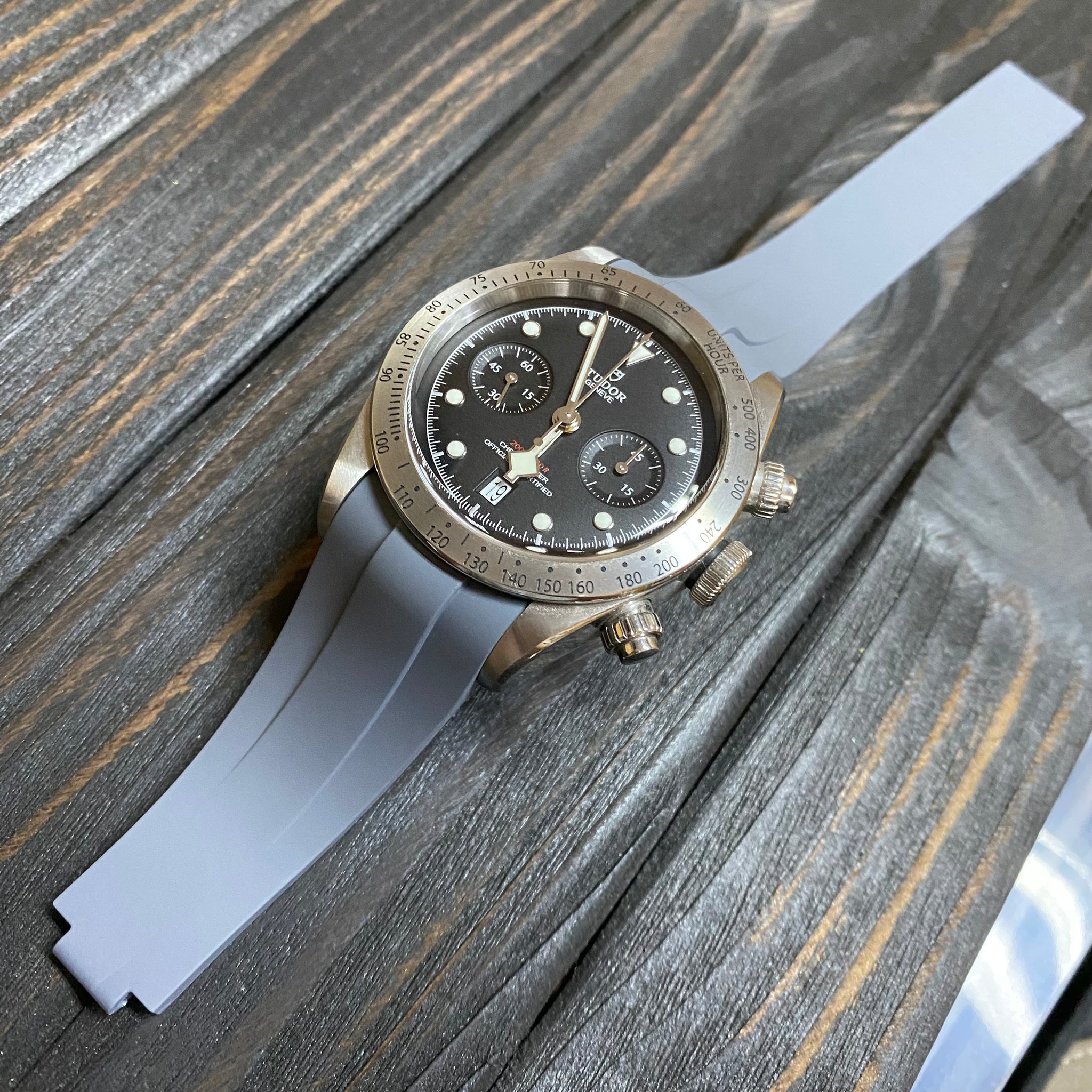 20mm, 22mm Curved End Gray FKM Rubber Watch Strap For Tudor Black Bay 41 / BB58 / BB54