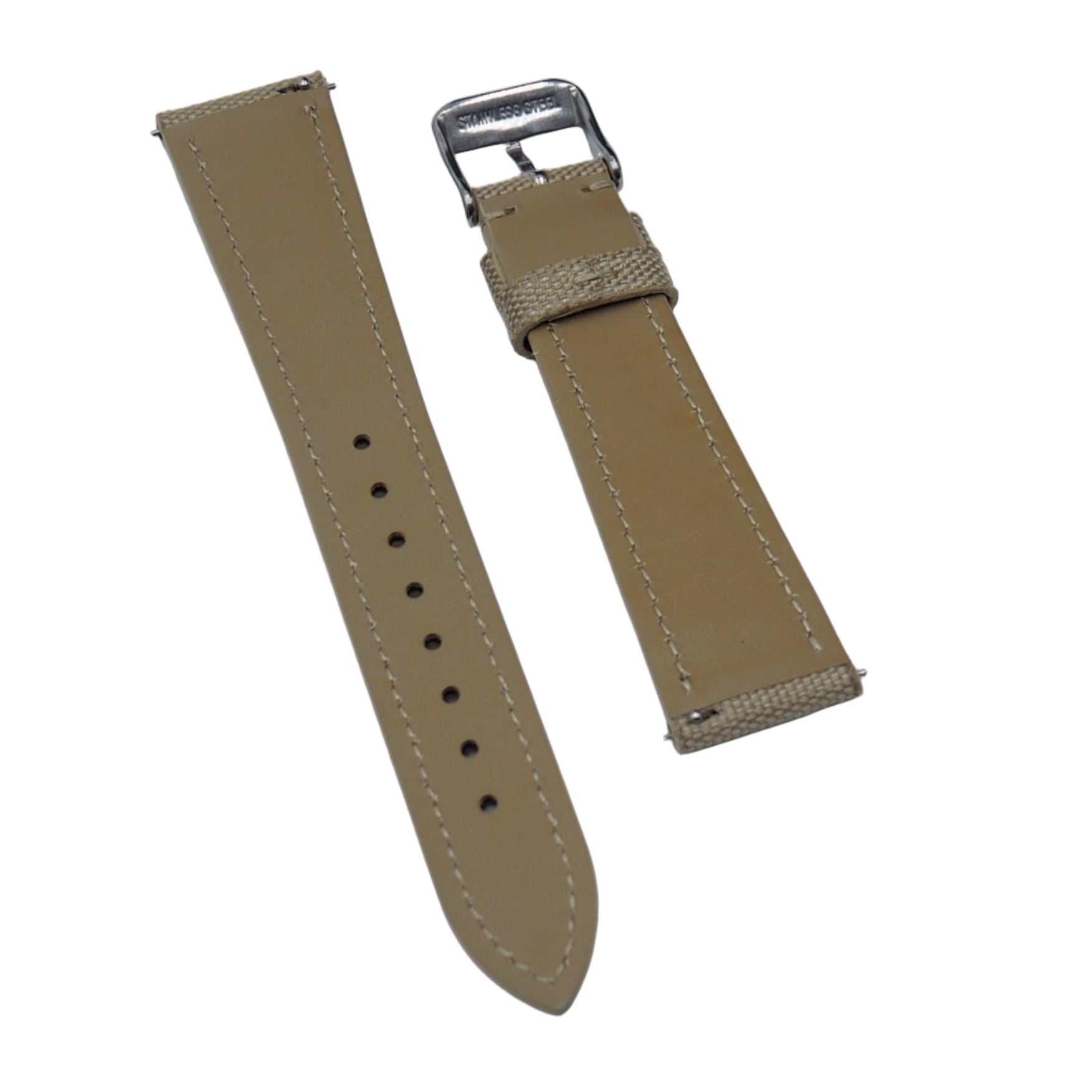 20mm, 22mm Khaki Nylon / Fabric Slim Watch Strap, Quick Release Spring Bars
