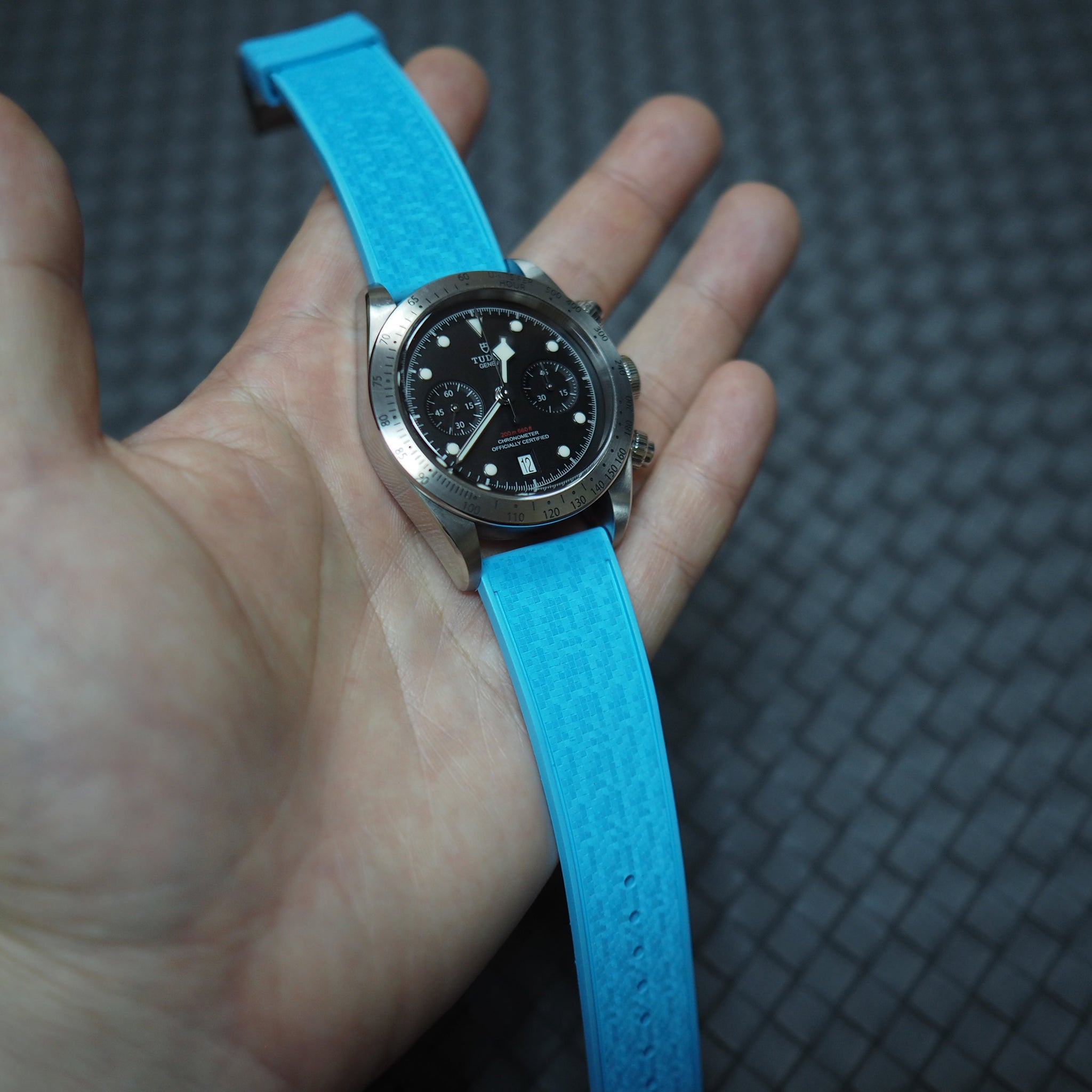 20mm, 22mm Mosaic Pattern Sky Blue FKM Rubber Watch Strap, Quick Release Spring Bars