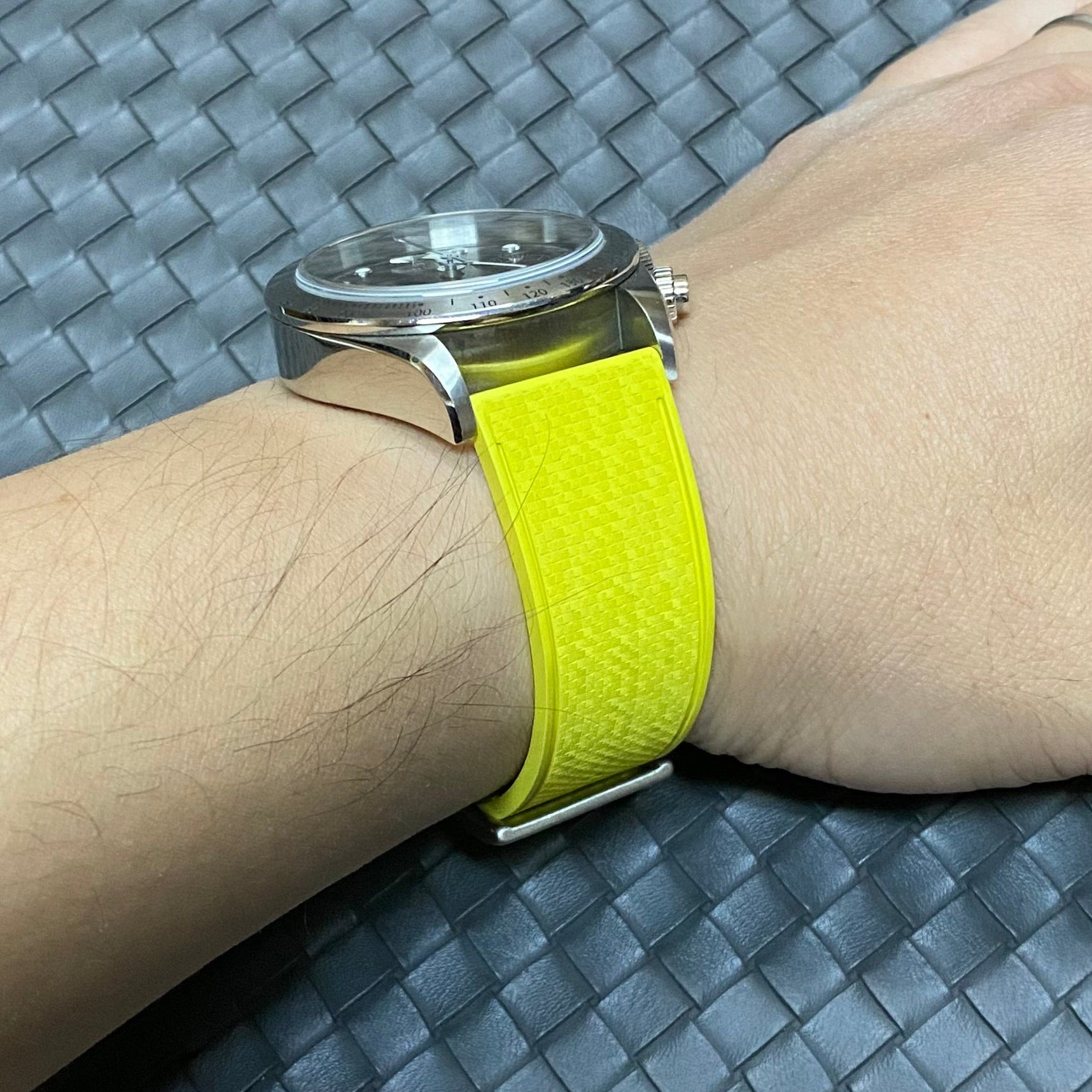 20mm, 22mm Mosaic Pattern Yellow FKM Rubber Watch Strap, Quick Release Spring Bars