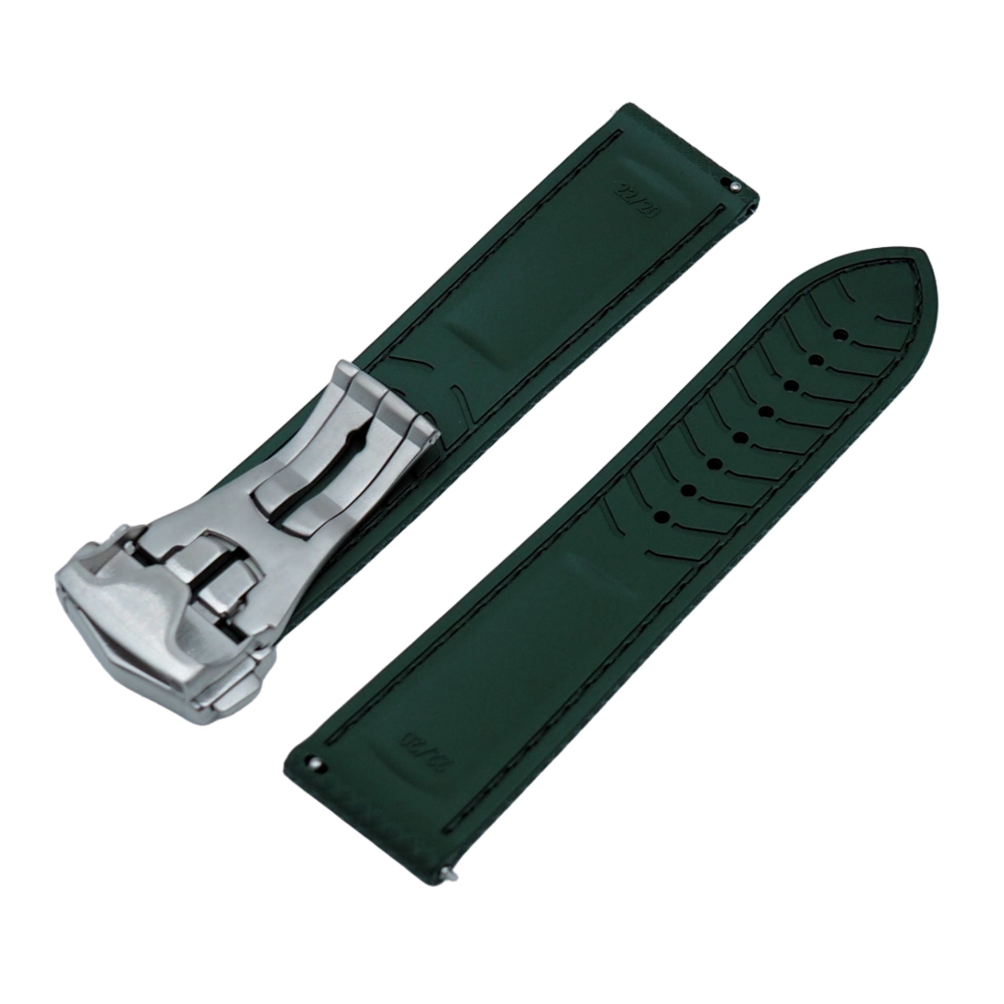 20mm, 22mm Omega Style Sailcloth Texture Blackish Green FKM Rubber Watch Strap, Quick Release Spring Bars