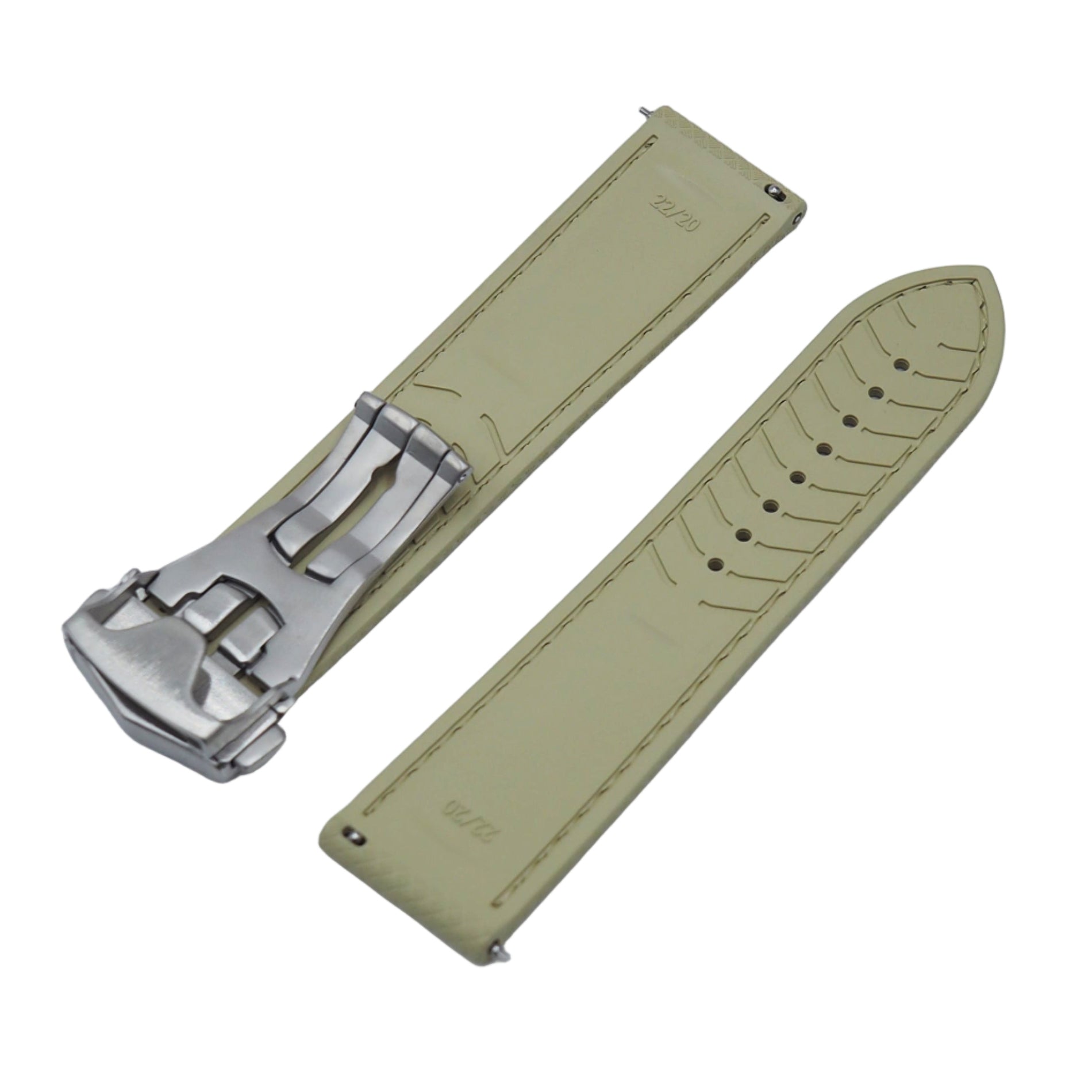 20mm, 22mm Omega Style Sailcloth Texture Khaki FKM Rubber Watch Strap, Quick Release Spring Bars