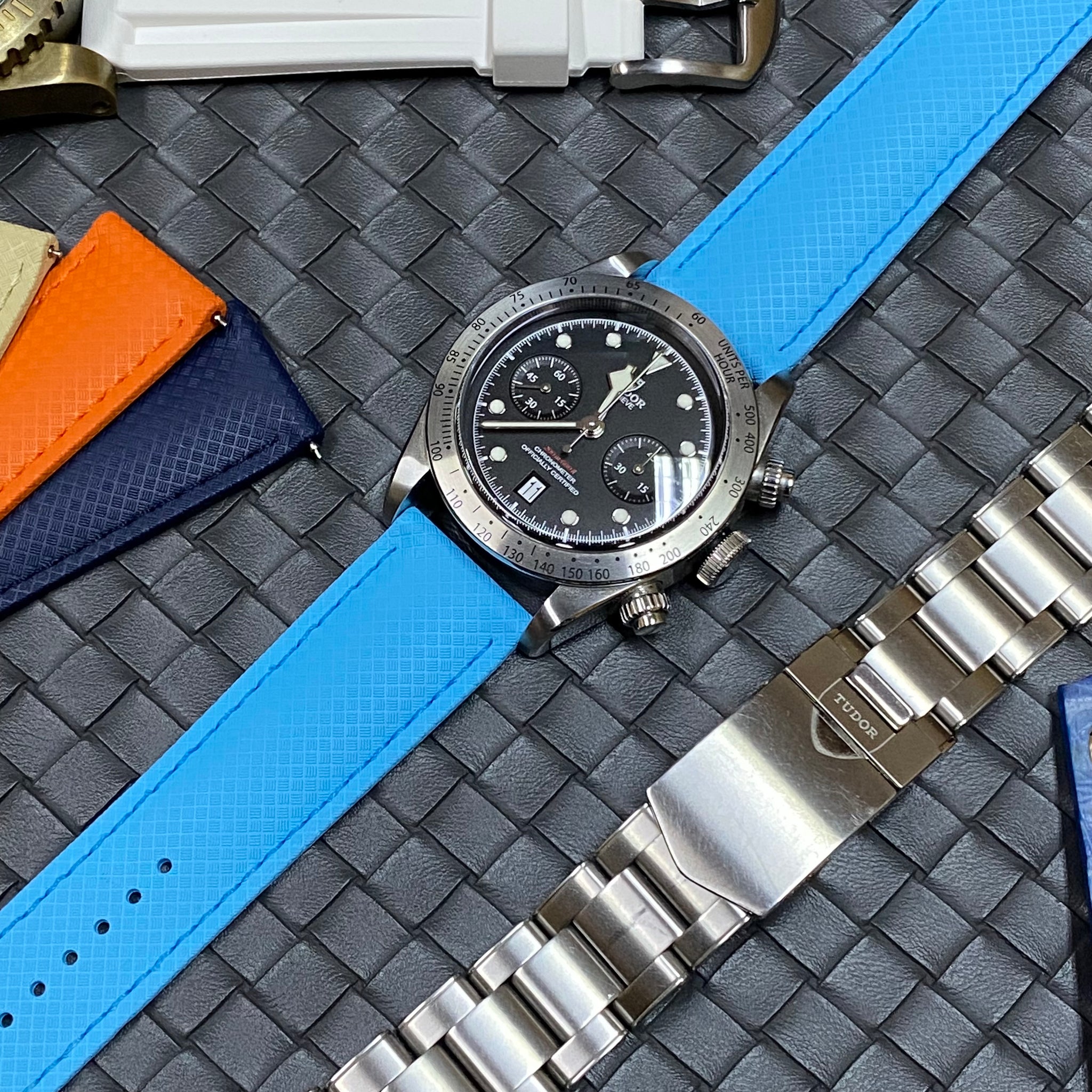 20mm, 22mm Omega Style Sailcloth Texture Sky Blue FKM Rubber Watch Strap, Quick Release Spring Bars