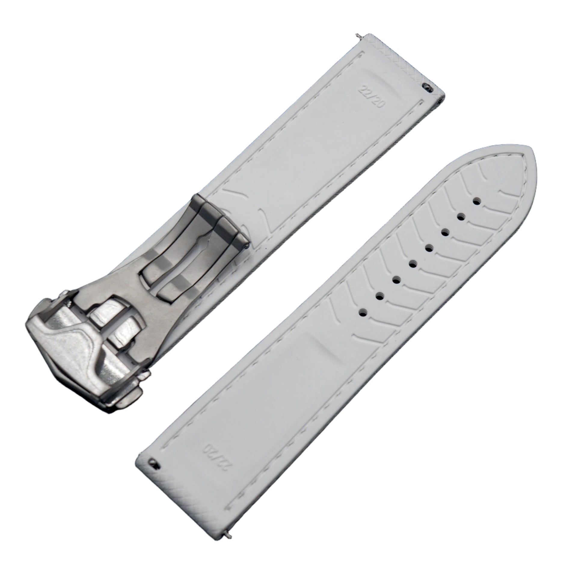 20mm, 22mm Omega Style Sailcloth Texture White FKM Rubber Watch Strap, Quick Release Spring Bars