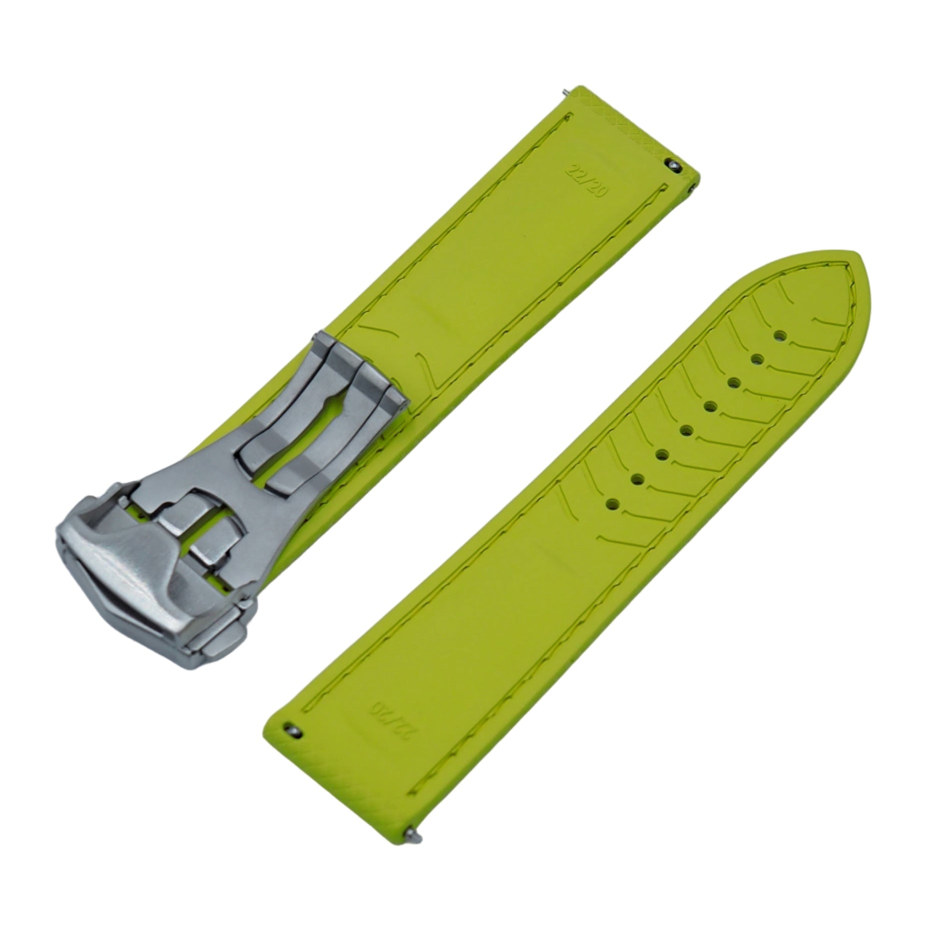 20mm, 22mm Omega Style Sailcloth Texture Yellow FKM Rubber Watch Strap, Quick Release Spring Bars