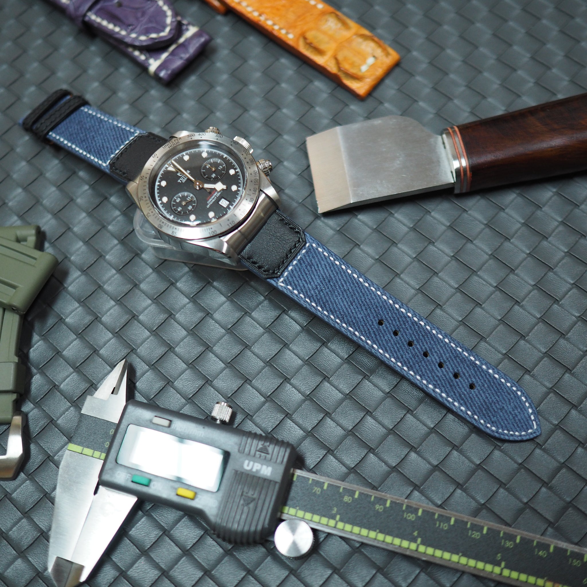 This watch strap is designed for Jaeger-LeCoultre Reverso and all watches with 22mm lug width. It is handmade crafts in JLC style and use the high quality Italy Art Jeans calf leather to guarantee highly comfortable wear around your wrist. There is jeans grain on the surface. The back is made of calf leather with anti-allergic coating. It comes with stainless steel tang buckle. It must fit for any medium sized watches as well as fashion watches.