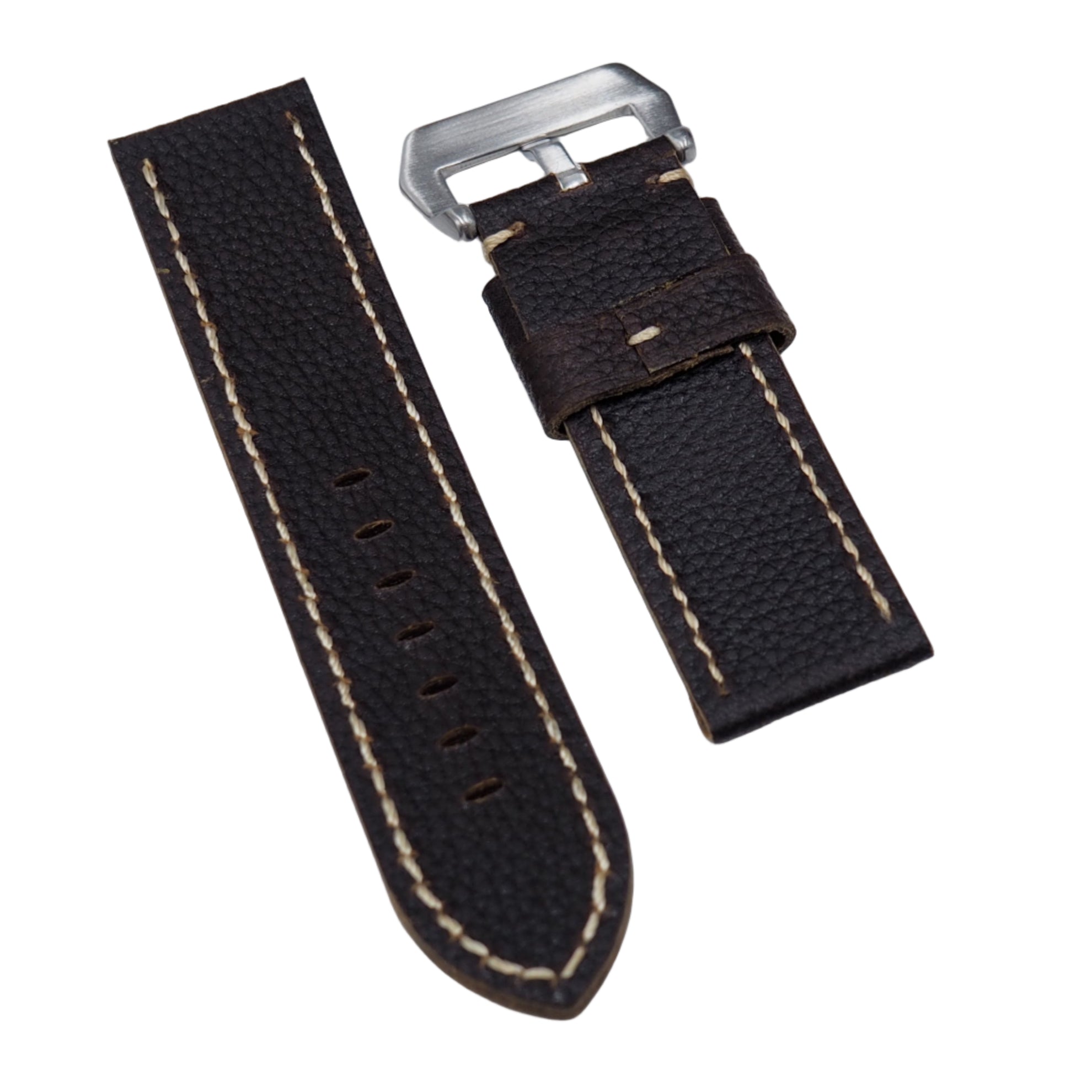 24mm, 26mm Dark Brown Litchi Grain Calf Leather Watch Strap