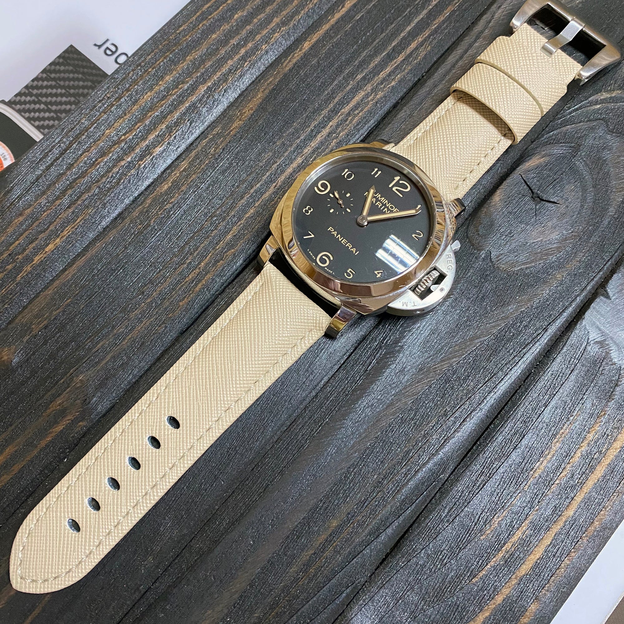 24mm Kahki Saffiano Leather Watch Strap For Panerai, Small Wrist Length