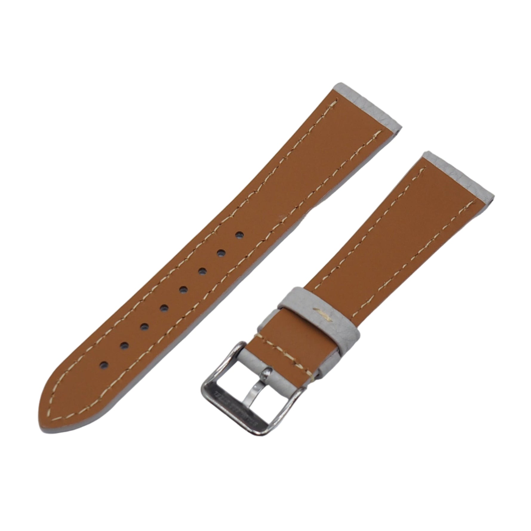 18mm, 20mm Rhino Gray Litchi Grain Calf Leather Watch Strap, Cream Stitching