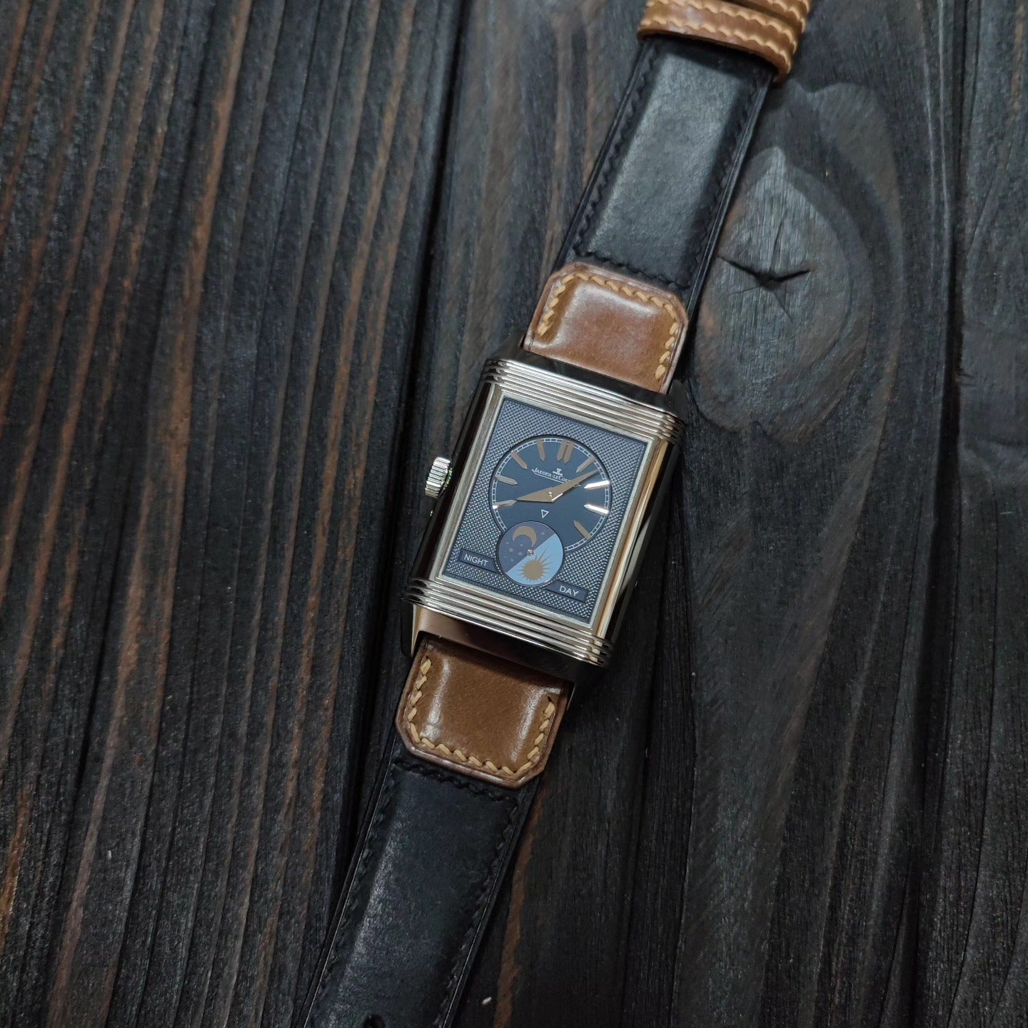 This watch strap is designed for Jaeger-LeCoultre Reverso and all watches with 22mm lug width. It is handmade crafts in JLC style and use the high quality Pueblo leather to guarantee highly comfortable wear around your wrist. There is Horween Shell Cordovan cover on the lug that is similar to original design. The back is made of calf leather with anti-allergic coating. It comes with stainless steel tang buckle. It must fit for any medium sized watches as well as dress watches.