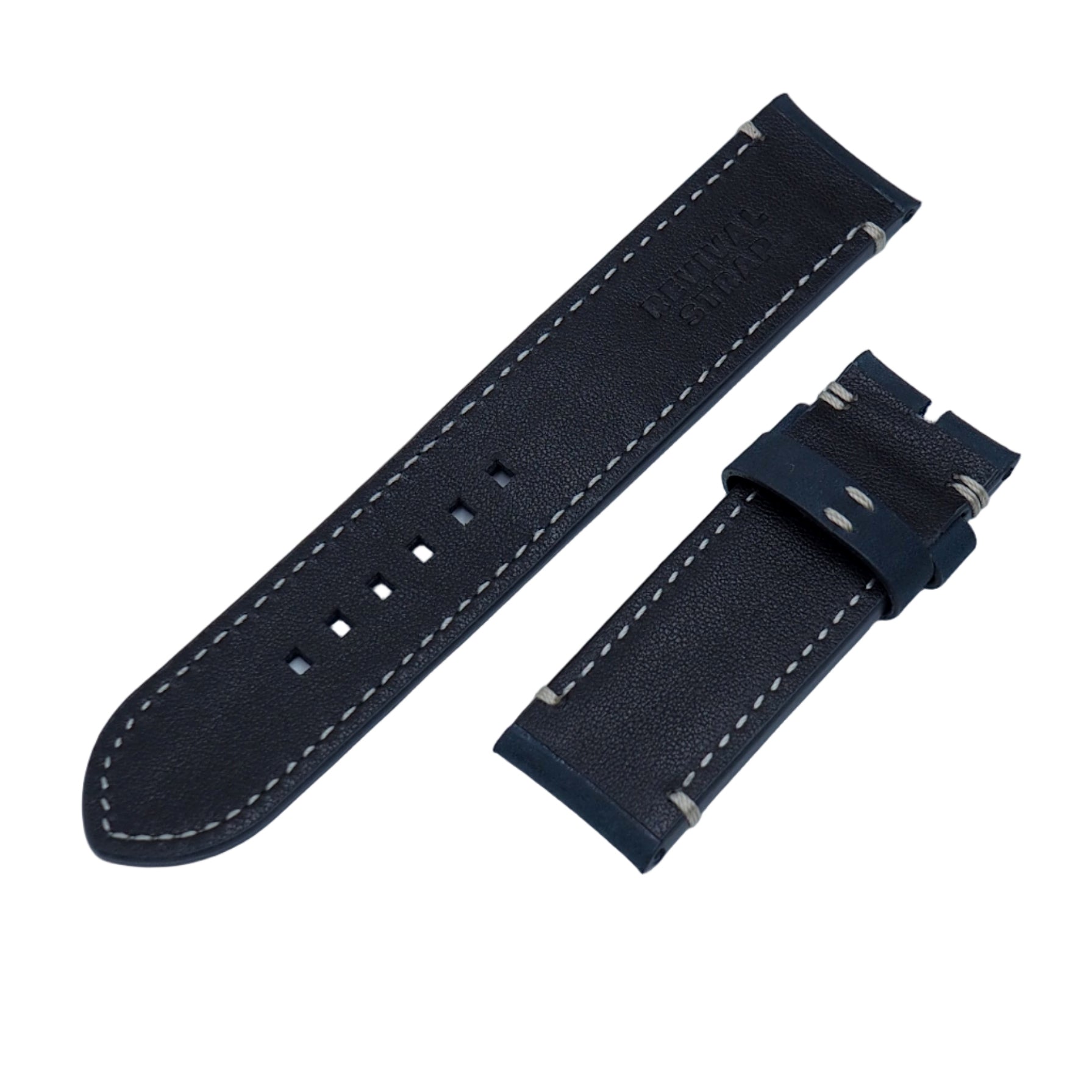 23mm Navy Blue Matte Calf Leather Watch Strap, Cream Stitching For Tudor Black Bay Bronze