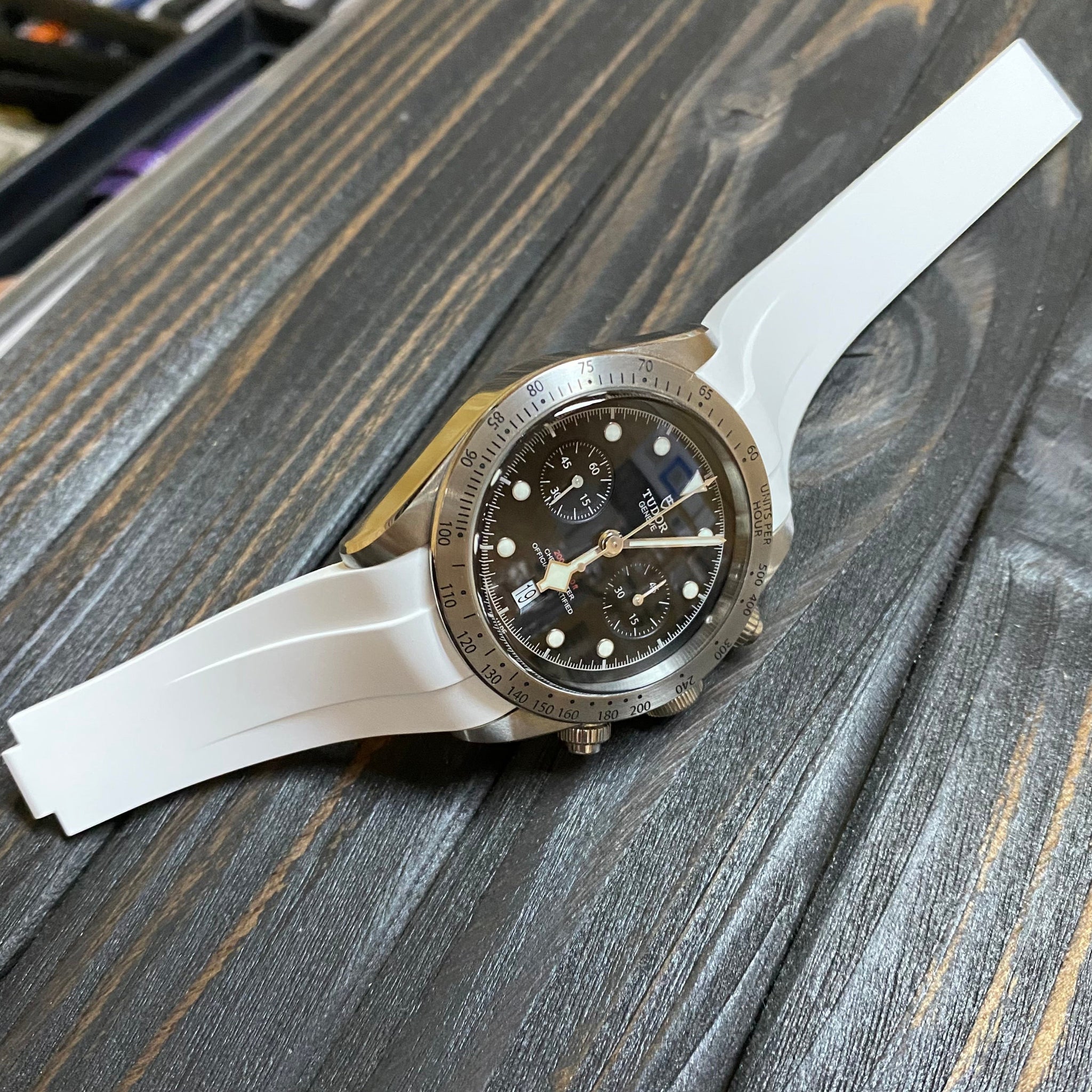 20mm, 22mm Curved End White FKM Rubber Watch Strap For Tudor Black Bay 41 / BB58 / BB54
