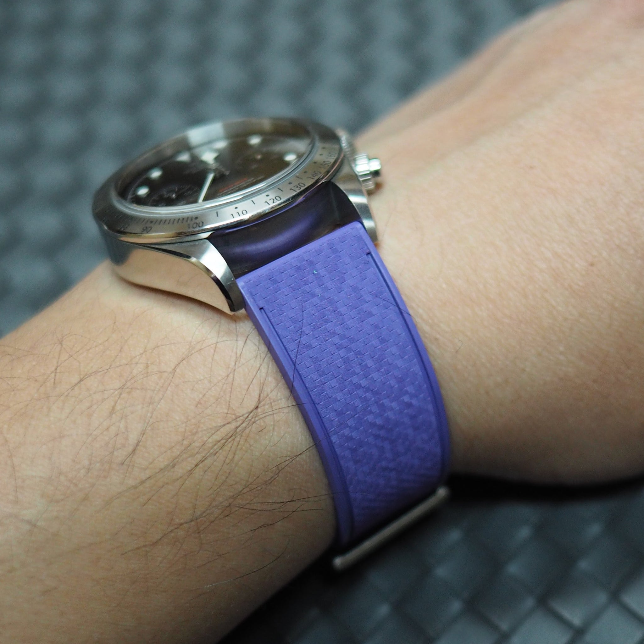 20mm, 22mm Mosaic Pattern Violet FKM Rubber Watch Strap, Quick Release Spring Bars