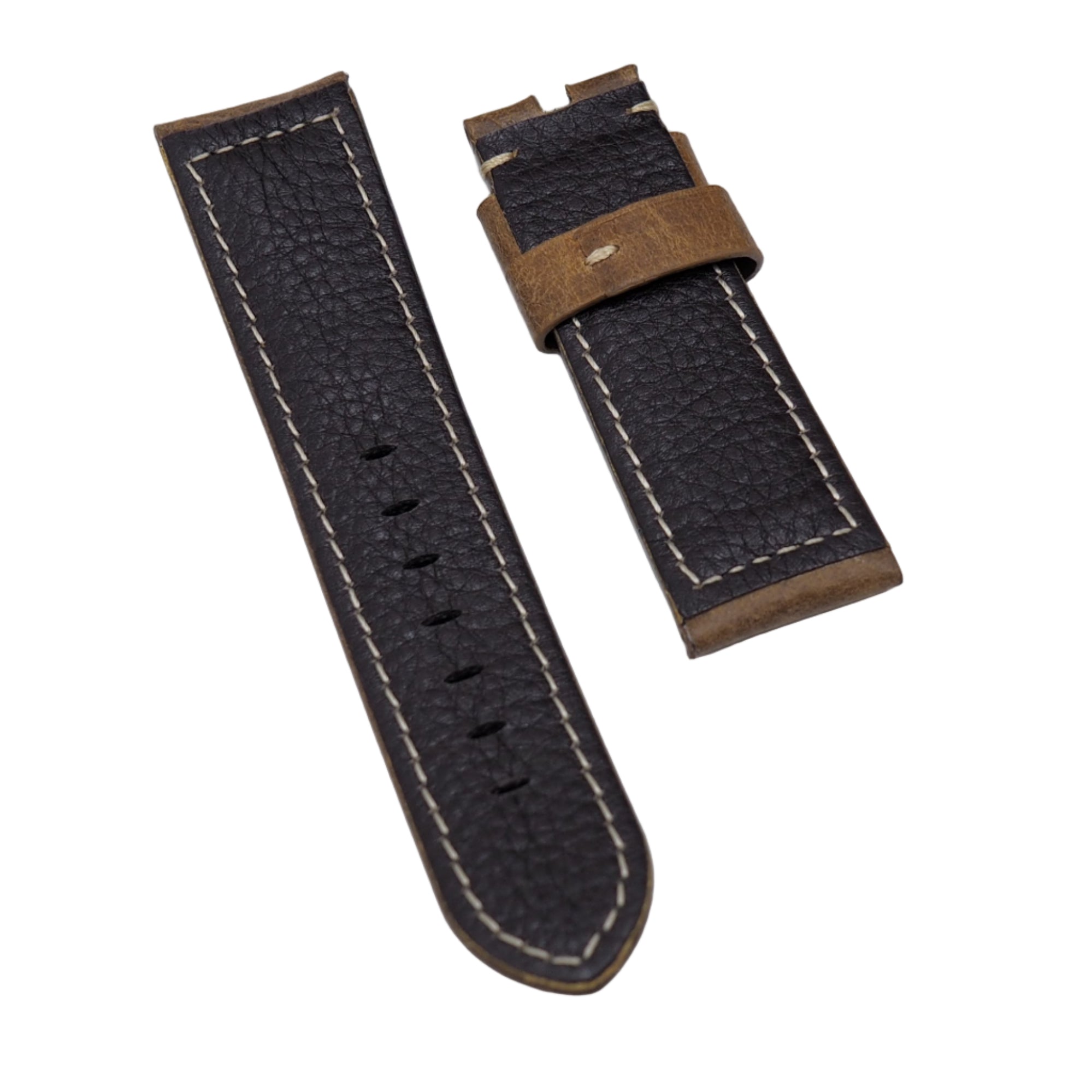 This watch strap is designed for Panerai and all watches with 24mm lug width. It is handmade crafts in Panerai style and uses the high quality calf leather to guarantee highly comfortable wear around your wrist. The back is made of calf leather with anti-allergic coating. It comes with stainless steel tang buckle. It must fit for any large sized as well as sport watches.