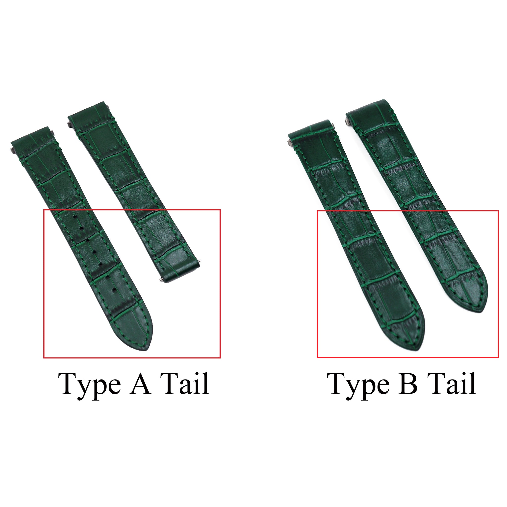 This watch strap is designed for Cartier Santos model watches. It is handmade crafts in Santos style and uses the high quality alligator leather to guarantee highly comfortable wear around your wrist. The back is made of calf leather with anti-allergic coating. It comes with quick release system. There are two types of tail for your choice.