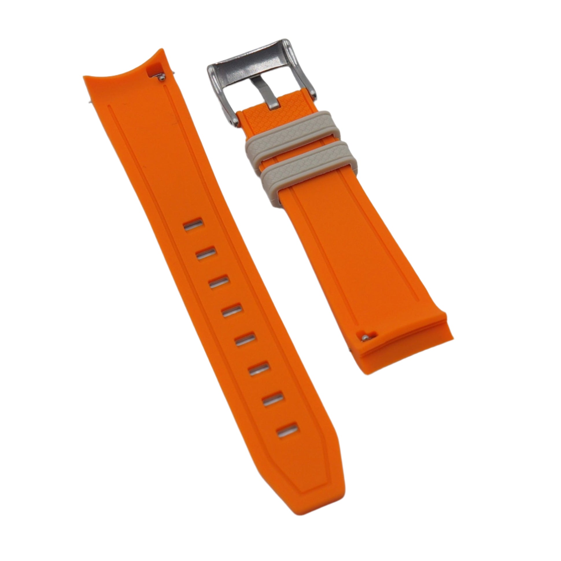 20mm Curved End Nylon Grain Dual Color Thunder Gray & Orange Rubber Watch Strap, Quick Release Spring Bars For Rolex, Omega and MoonSwatch