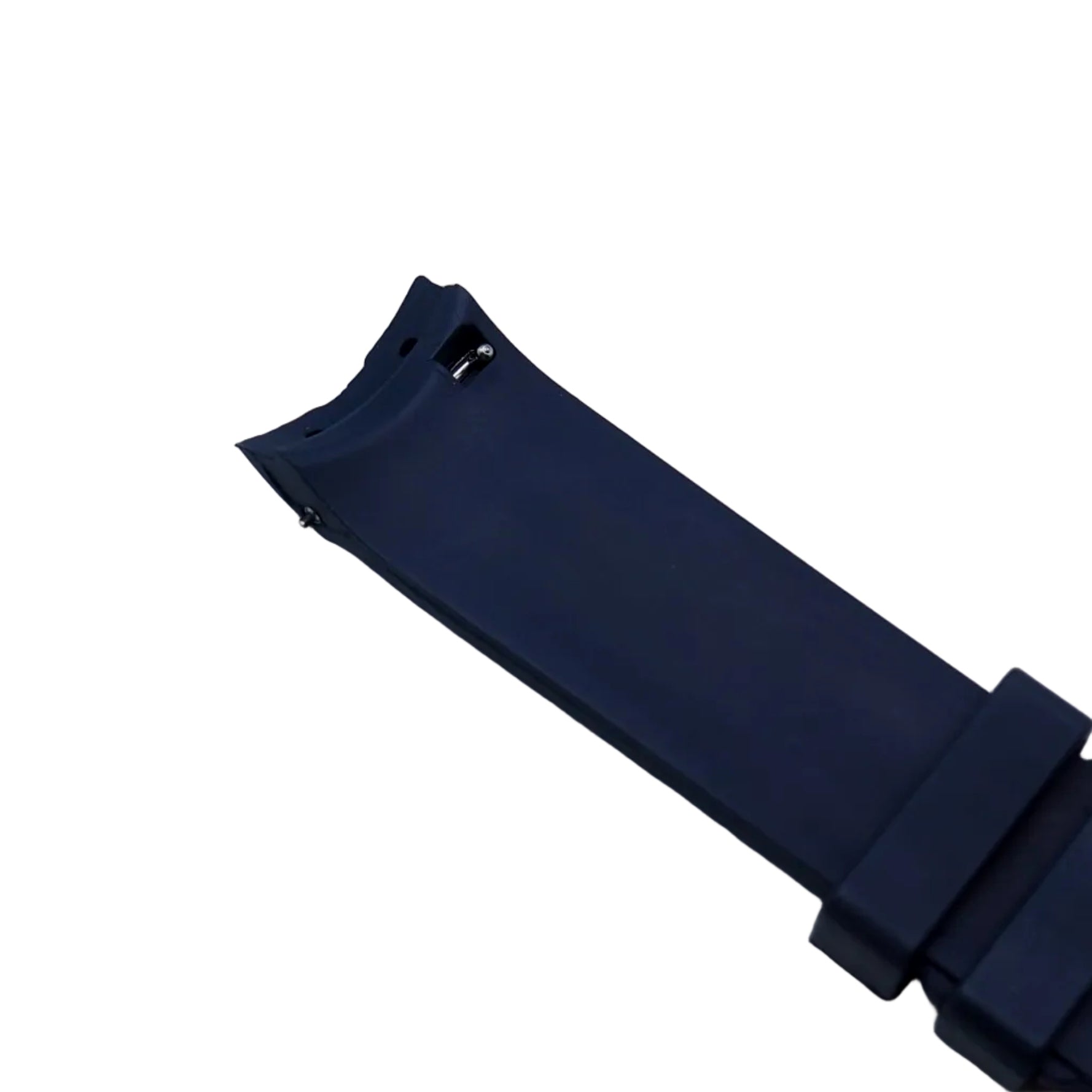 21mm Curved End Navy Blue FKM Rubber Watch Strap For Longines HydroConquest 41mm, Quick Release Spring Bars