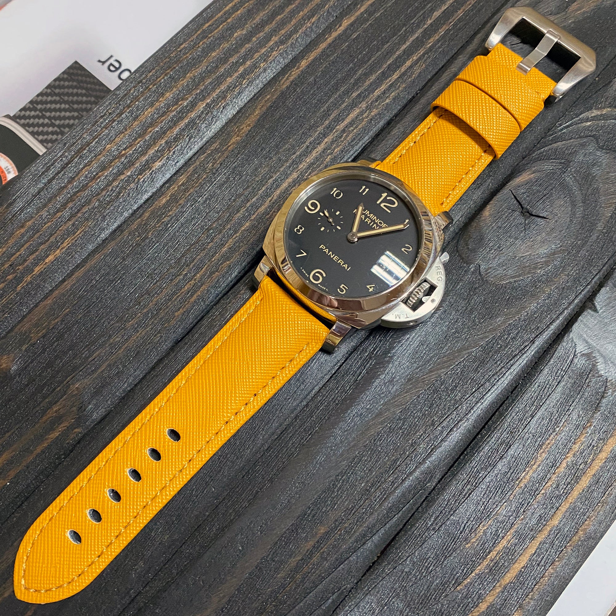 24mm Orange Saffiano Leather Watch Strap For Panerai, Small Wrist Length