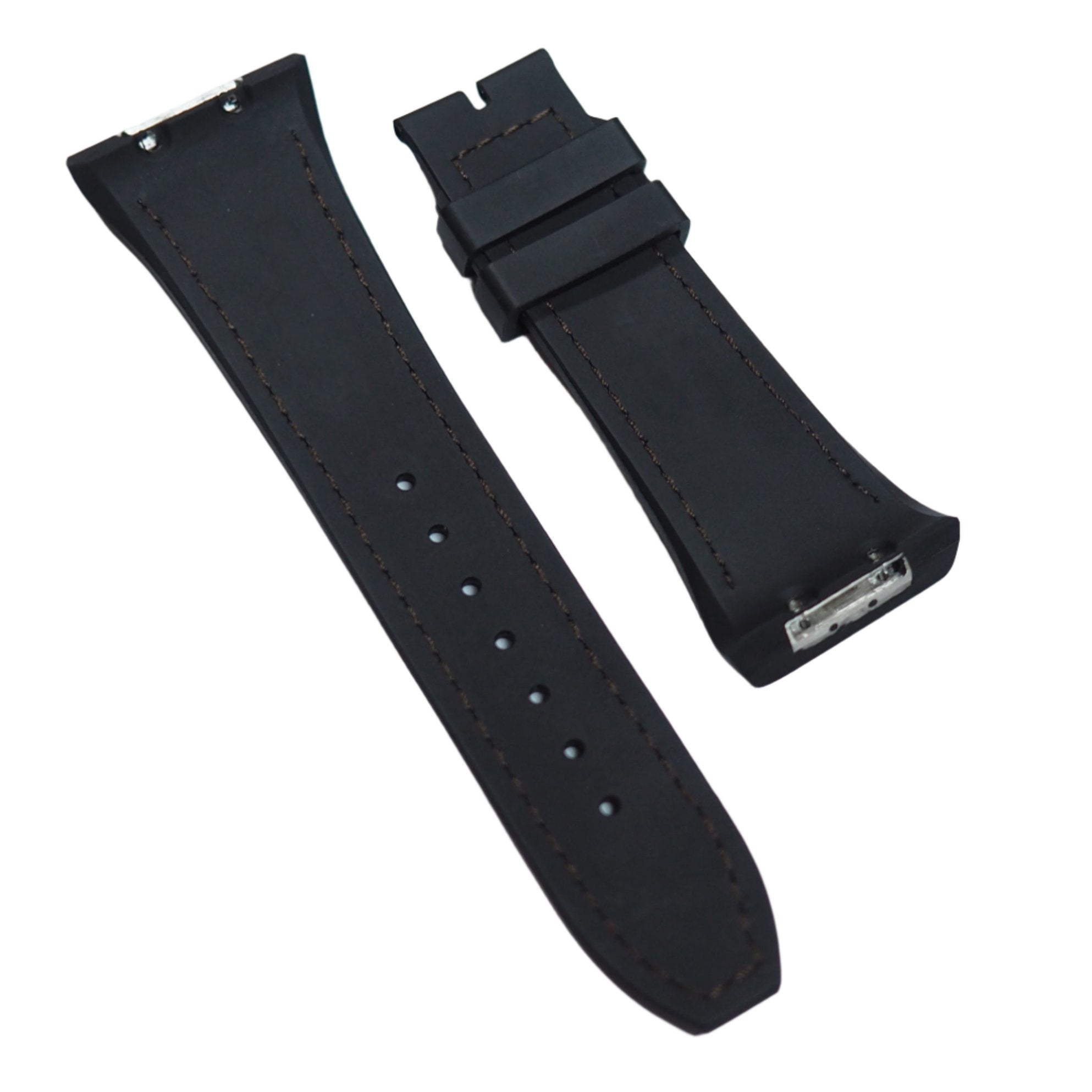 This watch strap is designed for Franck Muller V41 and V45. It is handmade crafts in Franck Muller style and use the high quality epsom leather to guarantee highly comfortable wear around your wrist. The back is made of rubber that make you on high performance. The lug attachment is made of metal that perfectly join the watch case.